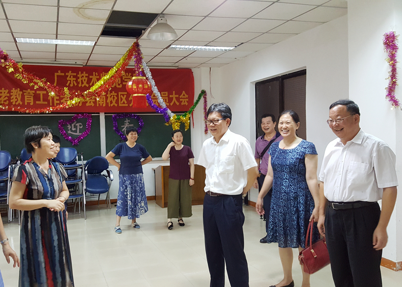慰问结束后,凌靖波、冯灿仪实地察看了南校区总务科和离退休人员活动室,并与离退休教职工亲切交流,关心了解离退休教工的退休生活。